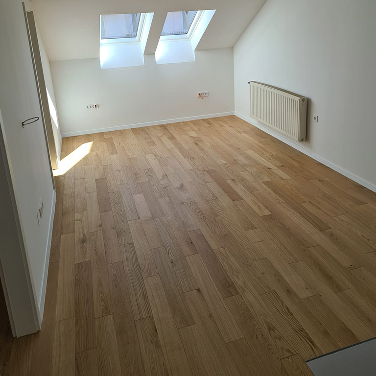 Klasično slaganje parketa u obliku seljačkog ili brodskog poda ovisno o širini samog pareta. Ravno slaganje može biti izvedeno od parketa 1 strip, 2 strip i 3 strip.